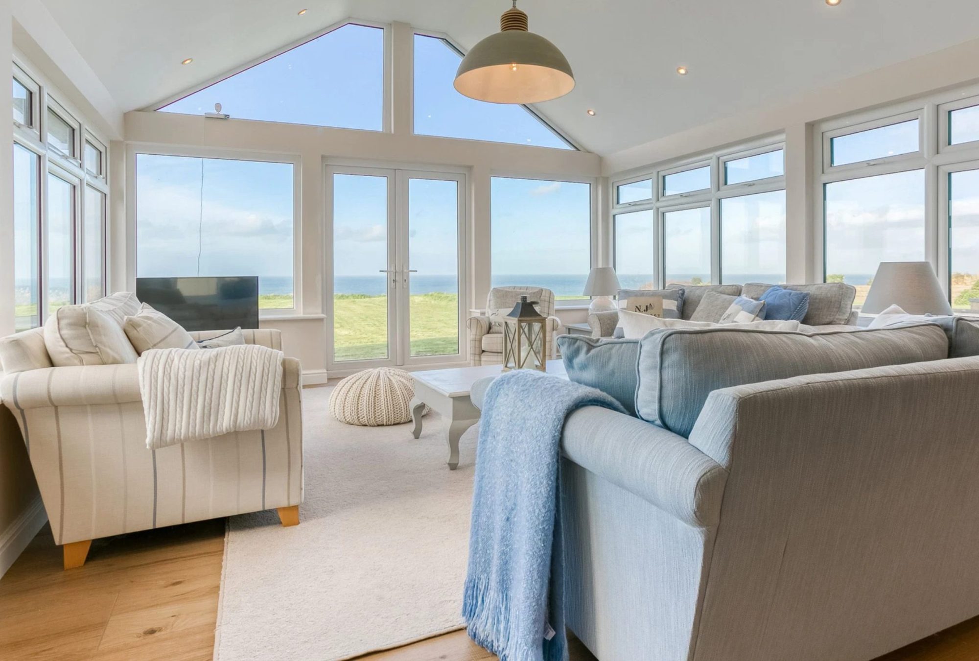 Set right on the headland above Traeth Nefyn, this is a house that naturally draws everyone together as the day winds down. Inside, the kitchen and dining space is light-filled, with a long table ready for easy dinners and drinks that stretch well into the evening.