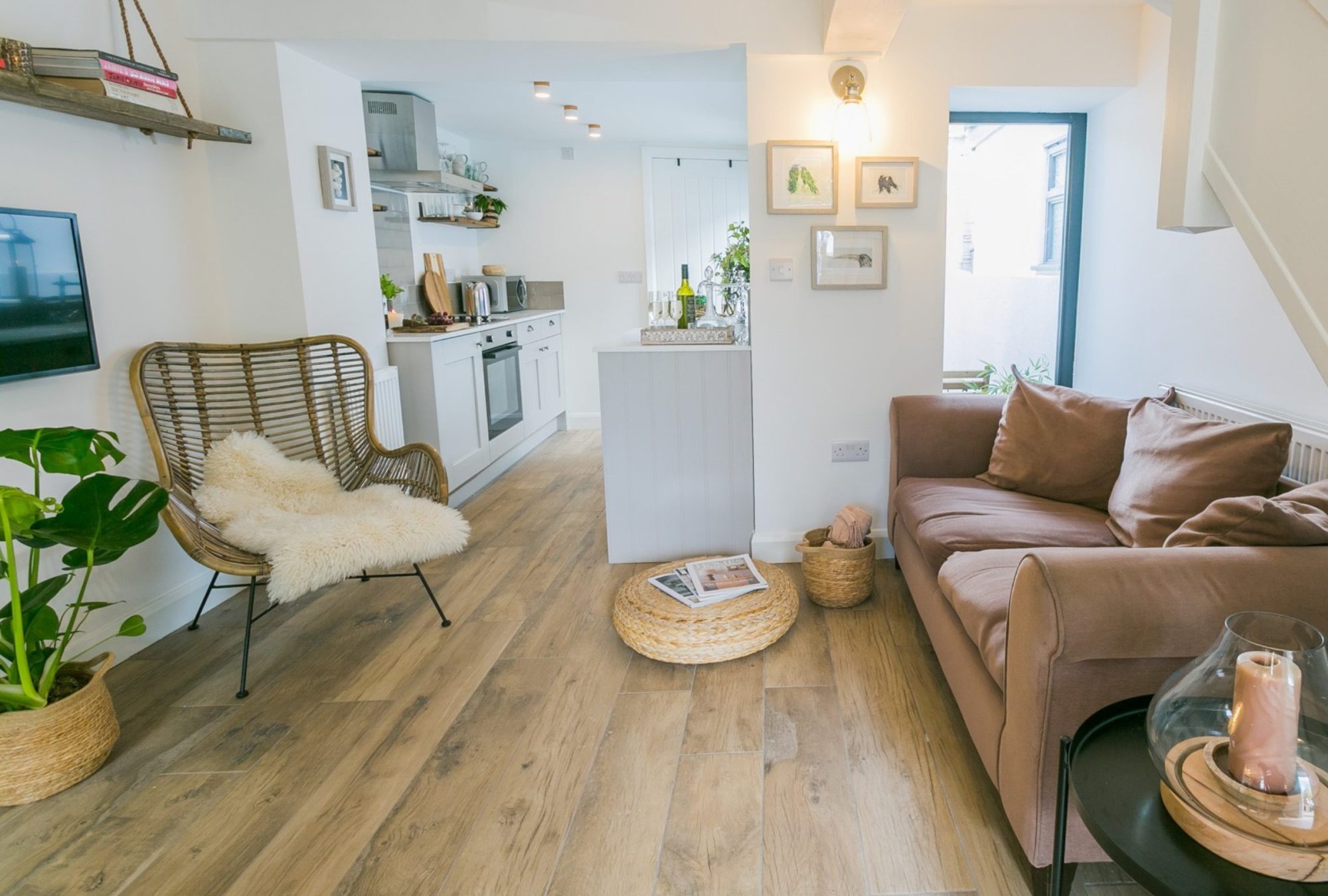 From left to right: Counter at Edwards of Conwy, Cockleshell Cottage living area