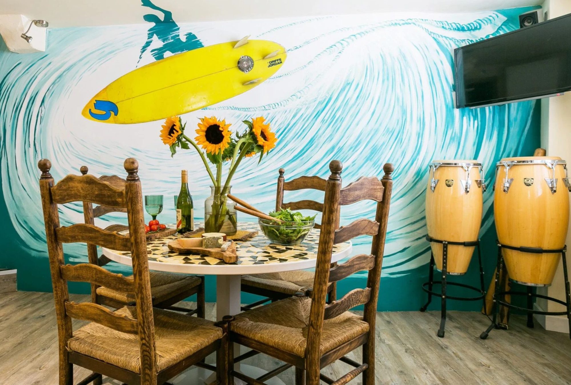 Almost on the water’s edge is Min y Wygyr, perched so close to the harbour it feels as though you’ve taken a mooring for the night. Its raised balcony looks out across boats, beaches and the curve of the bay: an unbeatable perch for fish and chips eaten with harbour lights flickering below.
