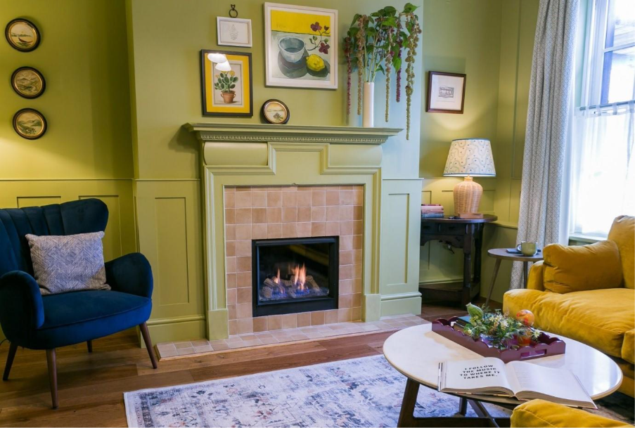 A short wander away sits The Papered House, a bold and joyful townhouse whose interiors feel almost designed to match a gelato menu. Pistachio greens, sage tones and elegant wallpapers fill the rooms, while the glass-roofed kitchen and dining space invites long breakfasts and late dinners. Outside, the garden zigzags with porcelain paths towards a gazebo dining area and fire pit, the sort of place where summer evenings stretch long after the ice cream shops close.