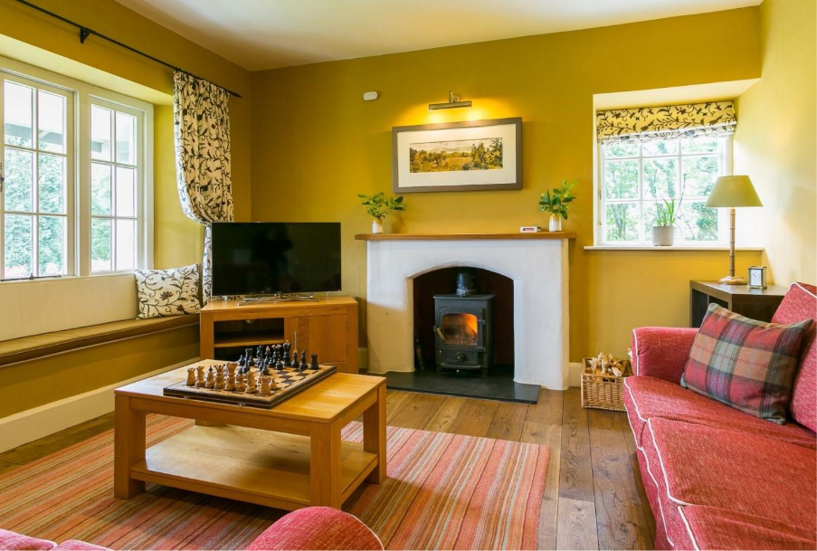 Not far away, Hafod Cae Maen feels like the countryside equivalent of a lemon or even mint gelato: fresh, bright and wonderfully uplifting. Pale yellow and green tones echo the surrounding gardens and estuary views, while the house itself offers enormous space for gatherings. Long dining tables, cosy reading nooks and terraces where the scent of flowers drifts across the lawn.