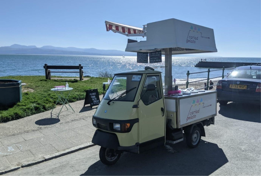 Their rich artisan gelato blends classic Italian inspiration with local Welsh ingredients, milk, cream, fruits and blossoms, creating flavours that feel both authentic and distinctly regional. The gelato is served from a charming Italian three-wheel Piaggio Ape, adding a dash of theatre to every scoop.